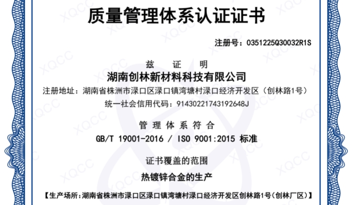 質(zhì)量管理體系認證證書